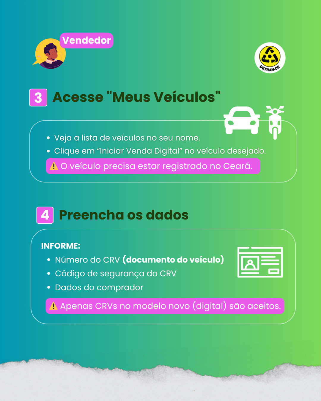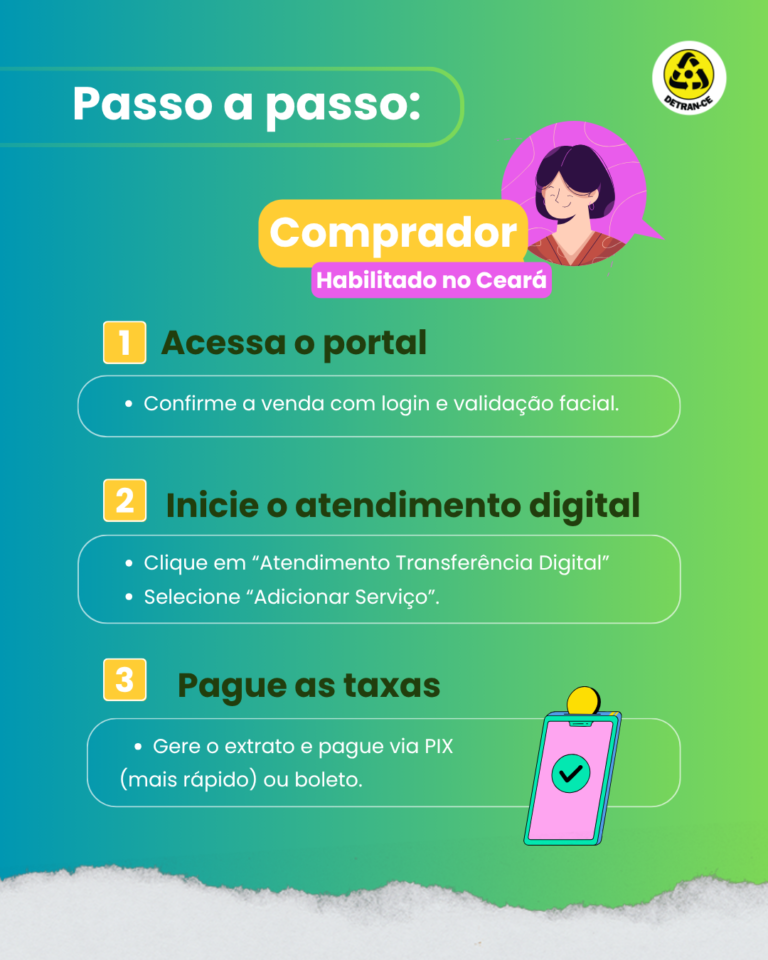 A partir desta terça-feira (5), o Departamento Estadual de Trânsito do Ceará (Detran-CE) passa a oferecer, em todo o estado, o novo serviço de transferência digital de veículos, que possibilita a compra e venda totalmente virtual, com mais rapidez, segurança e economia.