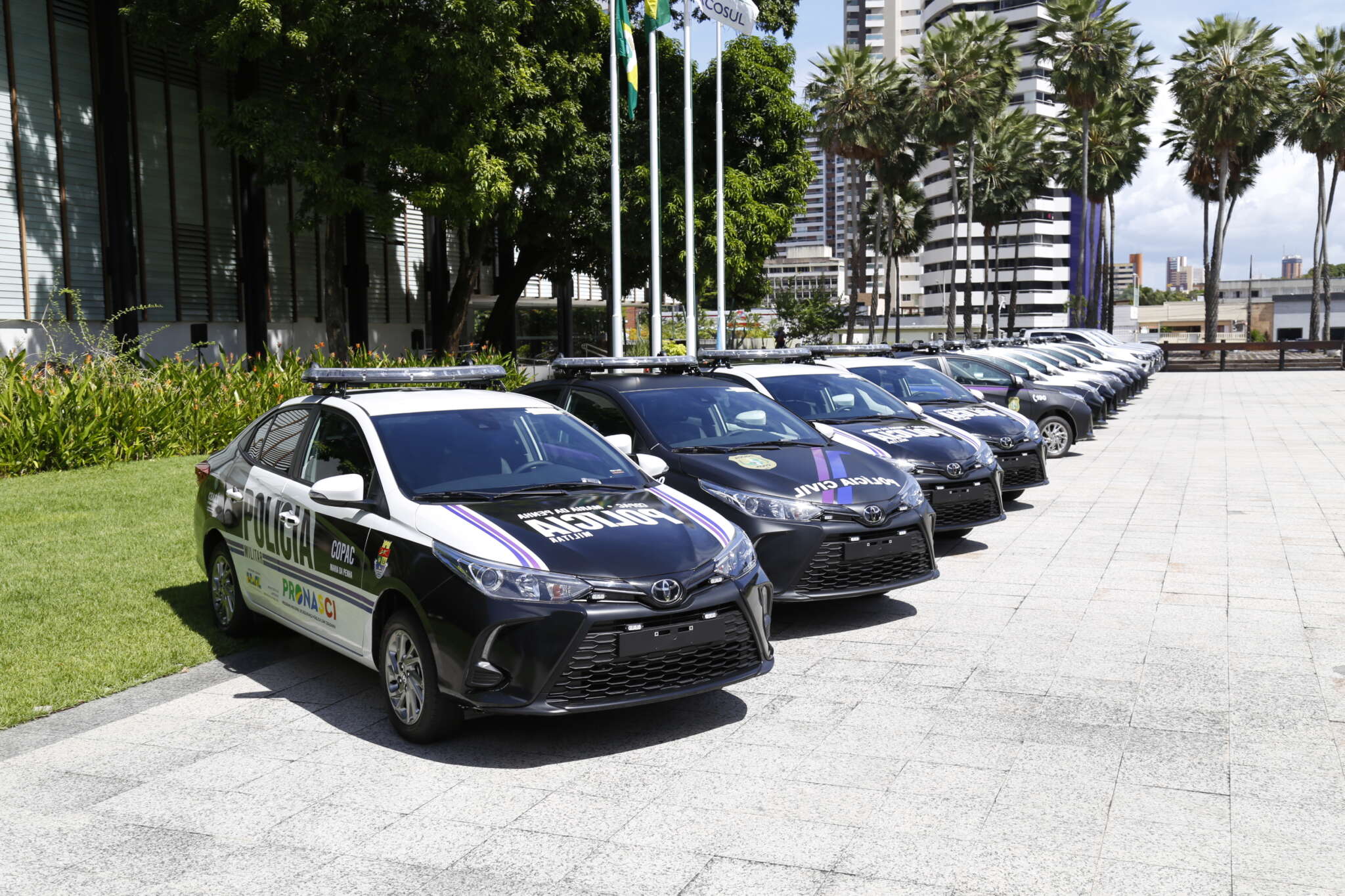 A fim de aprimorar as atividades de investigação policial, atendimento qualificado às mulheres vítimas de violência e acompanhamento de medidas protetivas de urgência no estado, foram entregues, ao todo, 16 viaturas, sendo oito para as Patrulhas Maria da Penha da Polícia Militar, quatro para a Polícia Civil, destinadas às Delegacias de Defesa da Mulher, além de quatro carros descaracterizados para os setores de inteligência policial, somando mais de R$ 2,3 milhões em investimento. A Secretaria da Segurança Pública e Defesa Social (SSPDS) também recebeu 119 pistolas 9x19mm e nove drones, reforçando a atuação das forças de segurança.