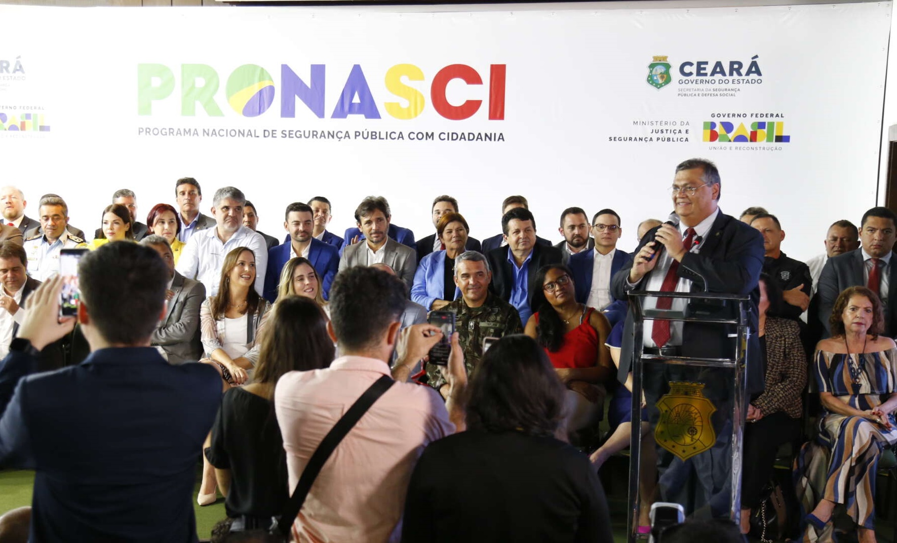 O ministro da Justiça e Segurança Pública, Flávio Dino, esteve, nesta quarta-feira (26), em Fortaleza, participando da entrega de equipamentos do Programa Nacional de Segurança Pública com Cidadania (Pronasci 2). A ação traz ao Estado uma série de investimentos do Governo Federal para o fortalecimento dos serviços de inteligência e do combate à violência doméstica e de gênero.