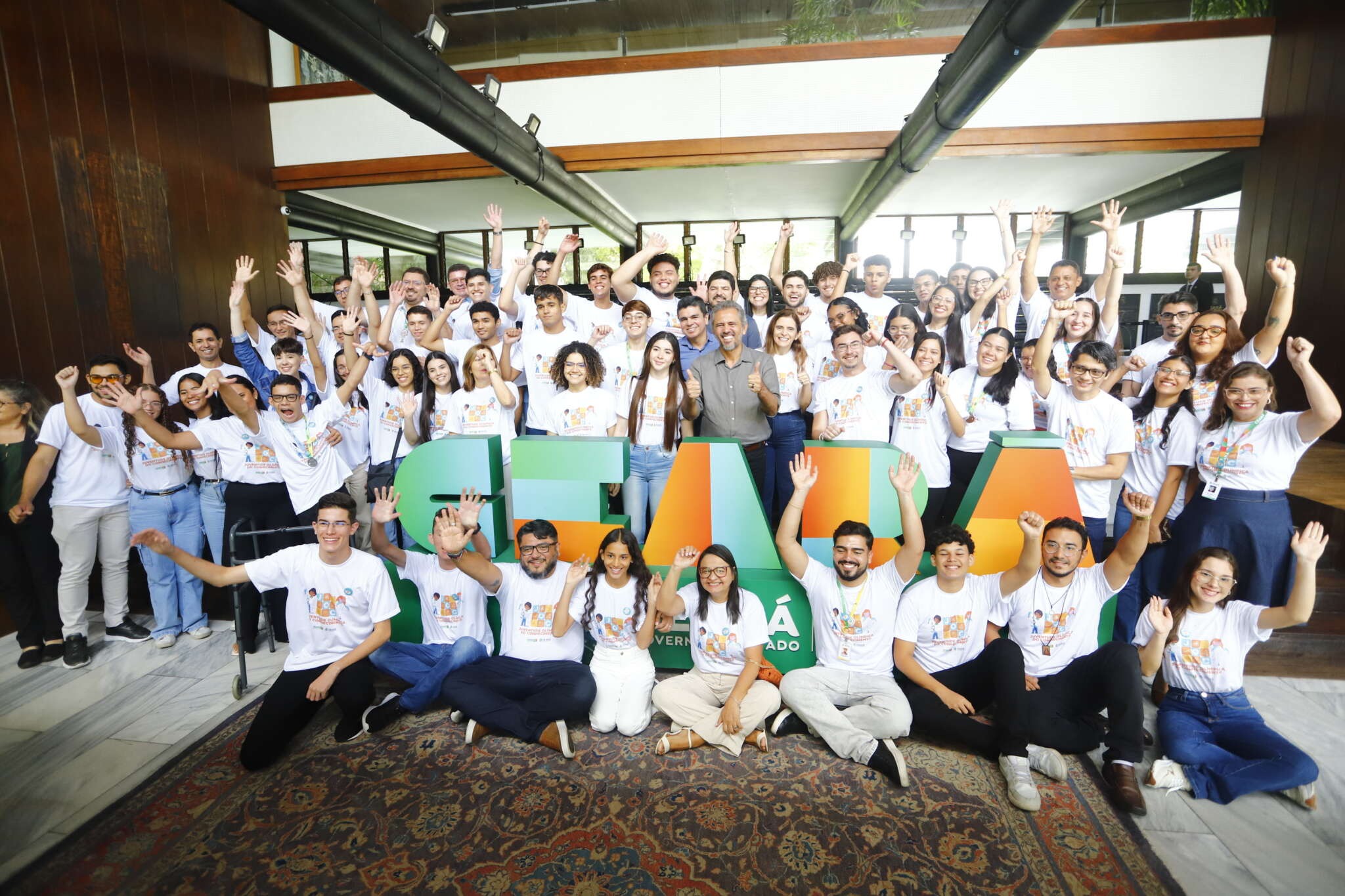 O governador do Ceará, Elmano de Freitas, recebeu nesta quinta-feira (29) um grupo de estudantes, professores e representantes de quase 60 projetos científicos que se destacaram em olimpíadas e feiras regionais, nacionais e internacionais em 2025. A audiência aconteceu no Palácio da Abolição e celebrou os frutos das políticas públicas de educação promovidas pela Secretaria da Educação do Ceará (Seduc).