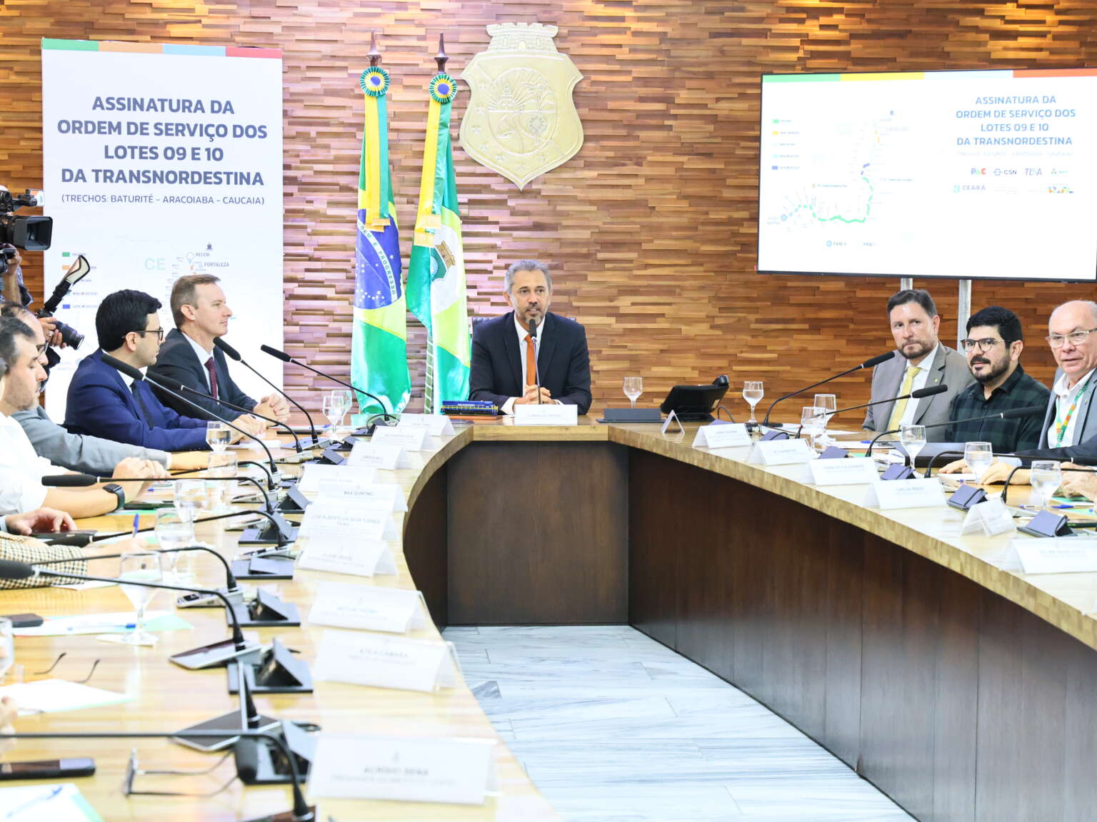 A Ferrovia Transnordestina passou a ter todas as obras autorizadas no trecho cearense após a assinatura da ordem de serviço dos lotes 9 e 10, etapa final de 97 km que cruza oito municípios. O ato ocorreu nesta quinta-feira (11), no Palácio da Abolição, em Fortaleza.