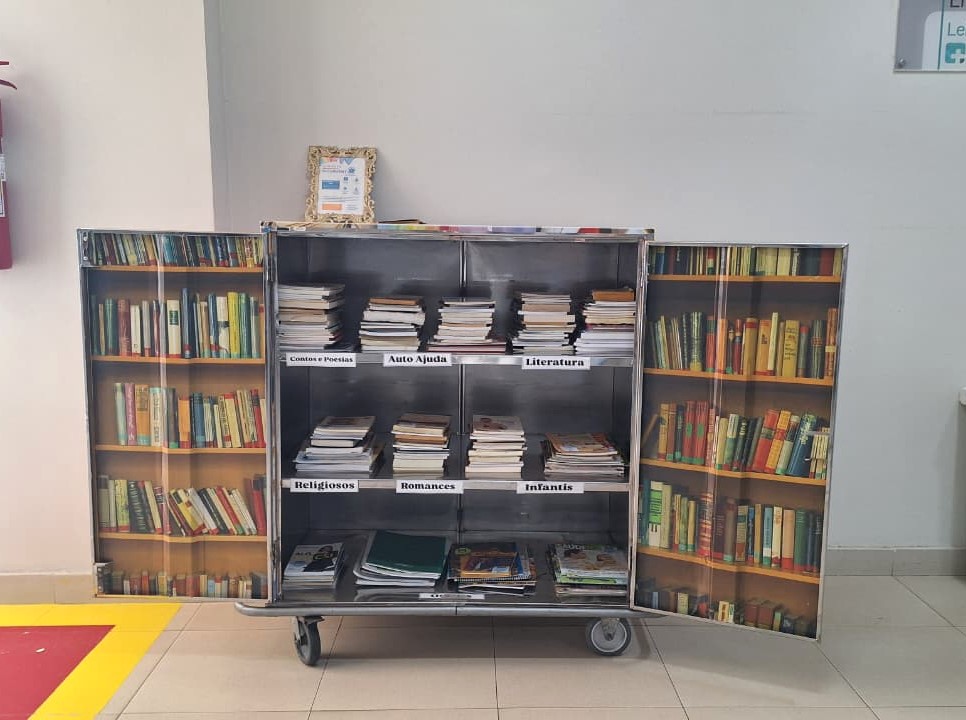 Os livros são disponibilizados em um carrinho itinerante, levado para as unidades de internação e permanecendo alguns dias à disposição de quem circula no local. “A biblioteca impacta de modo positivo no nosso usuário a partir do momento que incentiva a leitura, é um momento de entretenimento, possibilita o aumento de conhecimento e ameniza a imagem do hospital como local de dor, sofrimento e espera”, explicou Cícera Hermínia, ouvidora do HRC e integrante do GT de Humanização.