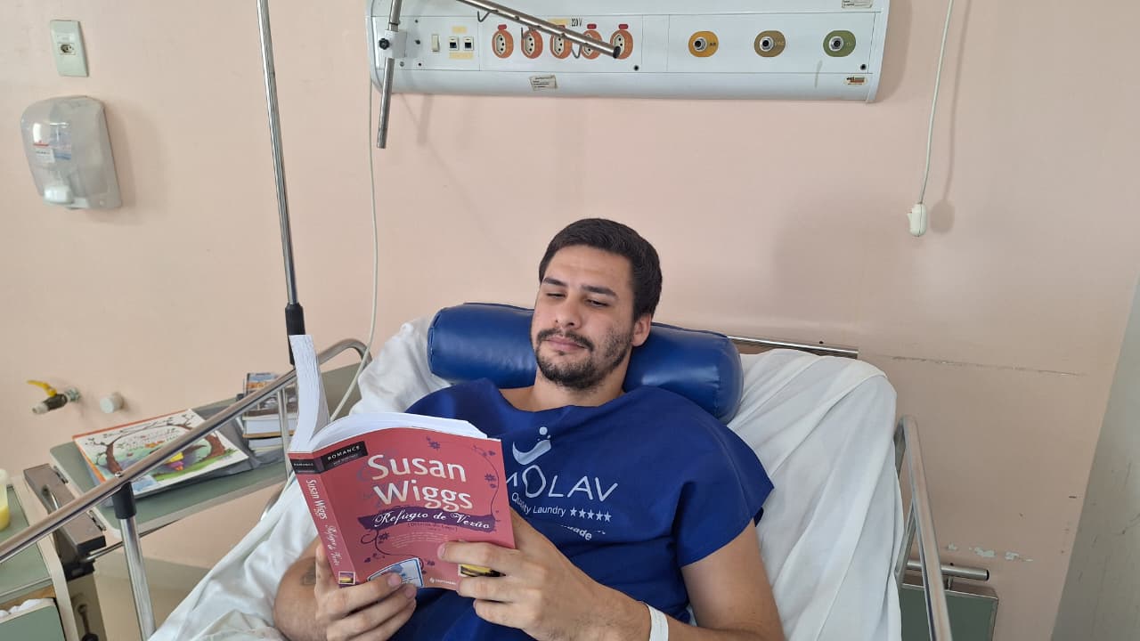 Um acidente de moto transformou a rotina do jovem Mateus Barreto, 27 anos, natural de Icó, que está internado no Hospital Regional do Cariri (HRC) após sofrer uma fratura no quadril. Restrito ao leito, ele encontrou na leitura uma forma de enfrentar o período de recuperação. O paciente passou a participar do projeto “Leitura em Movimento”, uma biblioteca itinerante que disponibiliza livros e revistas para pacientes, acompanhantes e trabalhadores da unidade.
