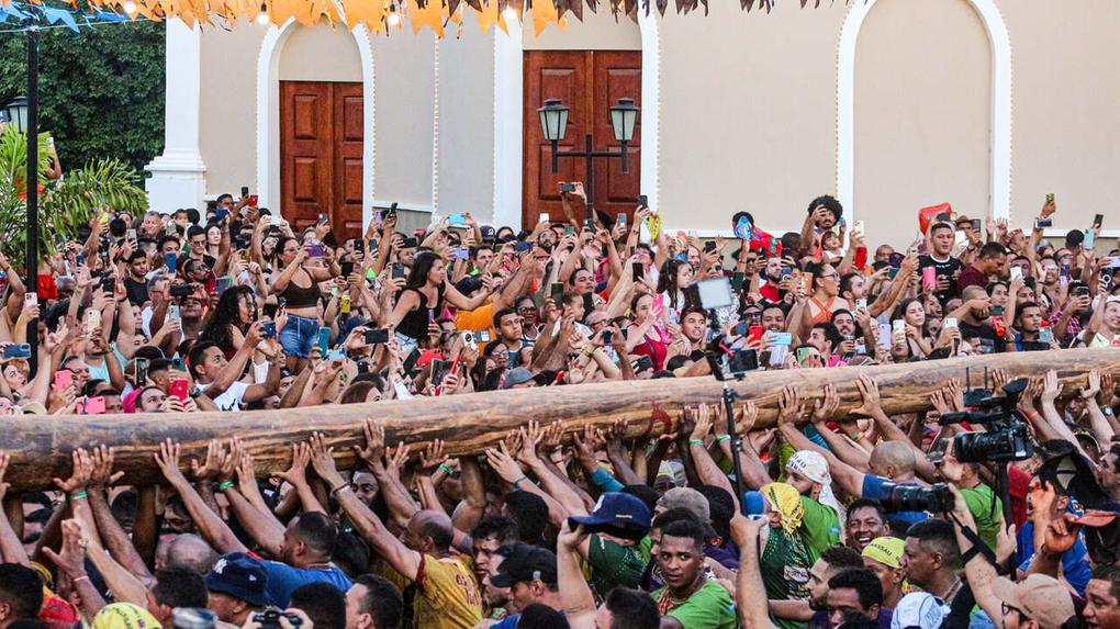 Cerca de 300 homens se revezam para transportar o tronco ao longo do trajeto, enquanto milhares de pessoas acompanham o percurso. Ao chegar em frente à Igreja Matriz de Santo Antônio, o pau é erguido com a bandeira do santo, em um dos pontos altos da celebração. Fiéis fazem questão de tocar ou sentar no tronco, como parte das tradicionais simpatias para casar ou encontrar um amor.