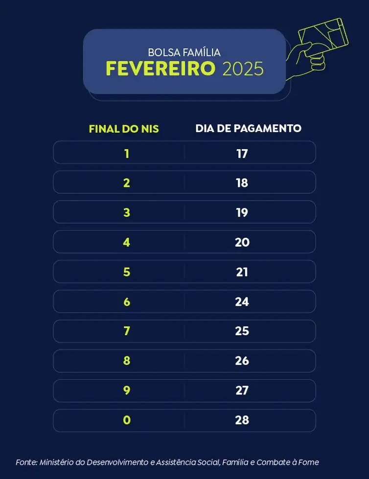 A Caixa Econômica Federal começa a pagar a parcela de fevereiro do Bolsa Família. Recebem nesta segunda-feira (17) os beneficiários com Número de Inscrição Social (NIS) de final 1.