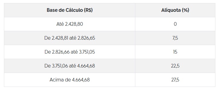 Assim como em 2023, a alteração atinge apenas as duas primeiras faixas da tabela progressiva do IR. As demais faixas permanecem inalteradas desde 2015.