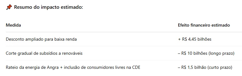 Apesar do aumento imediato, o MME aposta que a compensação se dará de forma gradual, e outras medidas em curso devem mitigar parte dos impactos já nos primeiros anos.