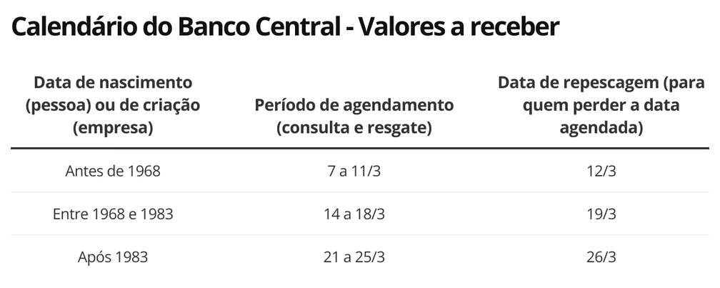 “Mas não se preocupe, mesmo se você não consultar ou solicitar o resgate do saldo existente em todas essas datas, ele continuará guardado à sua espera”, informa o BC.