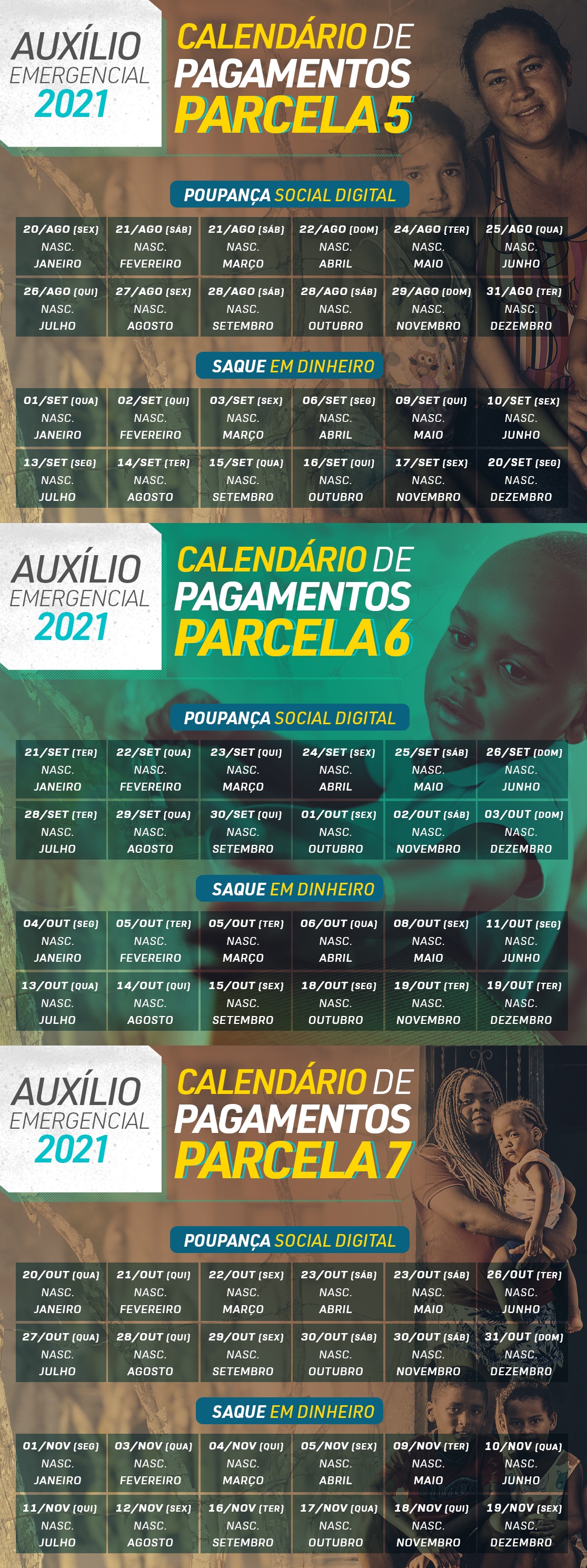 Nas parcelas anteriores do Auxílio Emergencial 2021, o cronograma de transferências e saques acabou sendo antecipado no decorrer do processo. Desta vez, o calendário apresentado é definitivo. “Nas quatro primeiras parcelas, tínhamos um tempo hábil muito curto, mas, mesmo assim, com o empenho de todos, conseguimos fazer a antecipação. Já no caso atual, conseguimos prazo maior de planejamento. Não haverá necessidade de antecipação porque o calendário já está bem consolidado”, explicou João Roma.