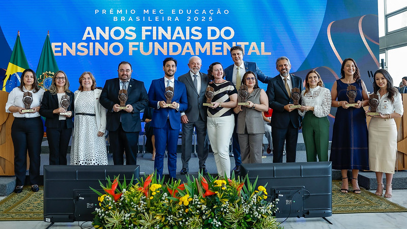 A cerimônia foi conduzida pelo presidente Lula e pelo ministro da Educação, Camilo Santana, e contou com a presença de autoridades, professores e estudantes. Criada pelo Ministério da Educação, a premiação reconhece experiências e resultados de destaque na educação básica e valoriza redes públicas, escolas, estudantes e demais atores escolares.