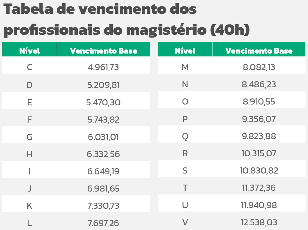 Com a nova lei, a tabela de vencimentos do MAG foi reajustada, impactando também aposentadorias e pensões. Além disso, o piso salarial dos professores contratados para jornada de 40 horas semanais passa a ser de R$ 4.961,73.