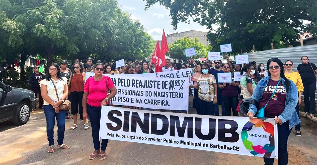 Organizado pelo Sindicato dos Servidores Públicos Municipais de Barbalha (SINDMUB), o protesto também apontou que, no ano passado, esses professores já perderam 22,24%, tendo em vista que o percentual aplicado pelo município foi inferior aos 33,2% de reajuste demandado em 2022 pelos mecanismos de cálculo da Lei do Piso do Magistério.