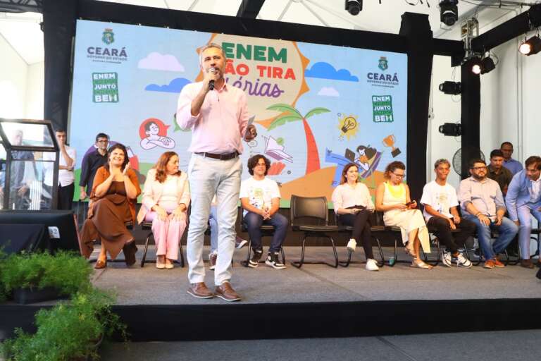 O Governo do Ceará lançou, nesta terça-feira (24), a edição 2025 do projeto “Enem Não Tira Férias”, que promove reforço intensivo na preparação dos estudantes da rede pública estadual para o Exame Nacional do Ensino Médio (Enem). A programação será realizada entre os dias 1º e 18 de julho, período tradicionalmente reservado às férias escolares, e contempla videoaulas, podcasts e diversos materiais de apoio.