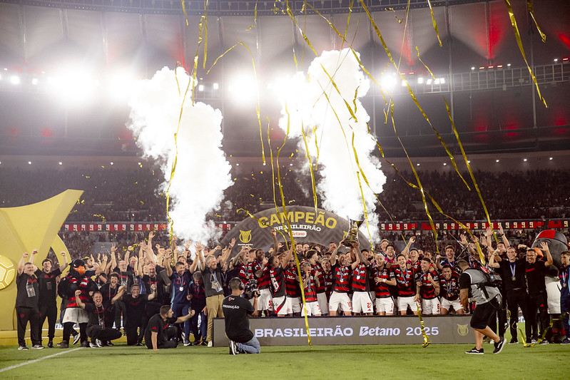 O Flamengo garantiu na noite desta quarta-feira (3), no Maracanã, mais um capítulo memorável de sua história. Com gol de Samuel Lino, o Rubro-Negro venceu o Ceará por 1 a 0 e confirmou o título do Campeonato Brasileiro de 2025, coroando uma temporada brilhante que já havia rendido as taças da Supercopa do Brasil, do Campeonato Carioca e da Copa Libertadores da América.