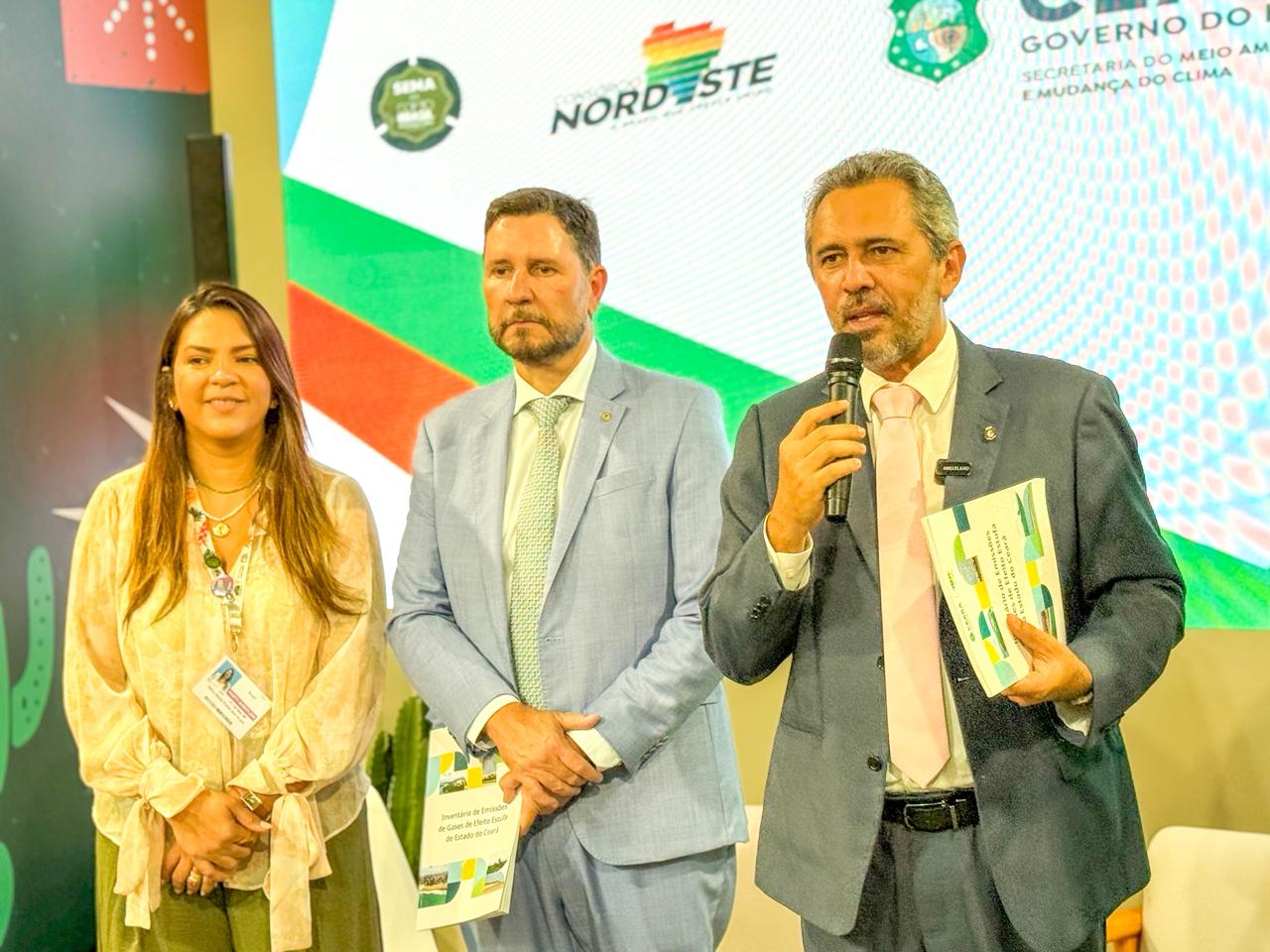 A apresentação ocorreu no espaço Brasil Nordeste, estande do Consórcio Nordeste, e contou com a presença do governador Elmano de Freitas, da secretária do Meio Ambiente Vilma Freire e do secretário-executivo do ICLEI, Rodrigo Perpétuo.