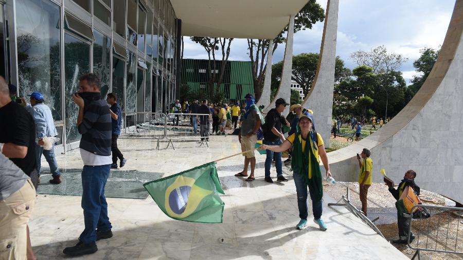 A data remete ao início deste ano, quando bolsonaristas invadiram e depredaram os palácios que abrigam os três Poderes em Brasília.