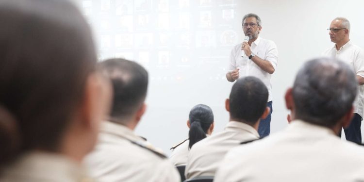 “Queria agradecer por todos os serviços prestados, não apenas neste momento de eleição, mas ao longo de toda a sua vida como Policial Militar”, destacou Elmano, dirigindo-se aos coronéis da Polícia Militar do Ceará (PMCE), que atuaram em diferentes regiões do estado. Ele ressaltou o caráter apartidário do trabalho da PMCE, afirmando que a instituição “serve ao cidadão cearense de forma exemplar.”