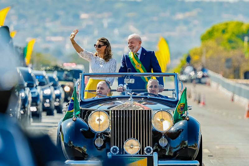 Lula e a primeira-dama Janja da Silva chegaram em carro aberto, o tradicional Rolls-Royce presidencial, e passaram em revista às tropas. Ao desembarcar na tribuna de honra, foram recebidos pelo ministro da Defesa, José Múcio Monteiro, e pelos comandantes do Exército, Marinha e Aeronáutica.