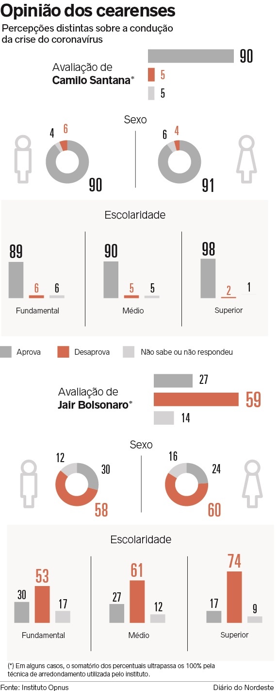 Em contrapartida, há uma avaliação diferente em relação ao Governo Federal. O público feminino é o mais contrário. O índice chega a 60%. Os mais jovens, com idades entre 18 e 24 anos, são os que mais estão insatisfeitos com as propostas apresentadas por Bolsonaro. O percentual chega a 69% de rejeição às ações. Cearenses de nível superior também se destacam com 74% de reprovação ao presidente.