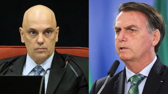 Alexandre de Moraes, ministro do STF (à esq.) e o presidente Jair Bolsonaro (PL) (à dir.)