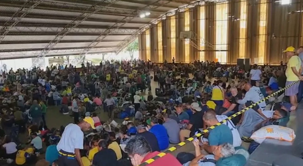 No local, os radicais têm acesso a água, comida, celulares e ficam com os próprios pertences. Idosos também tiveram preferência para passar pela triagem. A PF confirmou que houve casos de mal-estar, mas que todos foram prontamente atendidos, sem maior gravidade. Tendas de saúde também foram montadas no local pelo Corpo de Bombeiros.