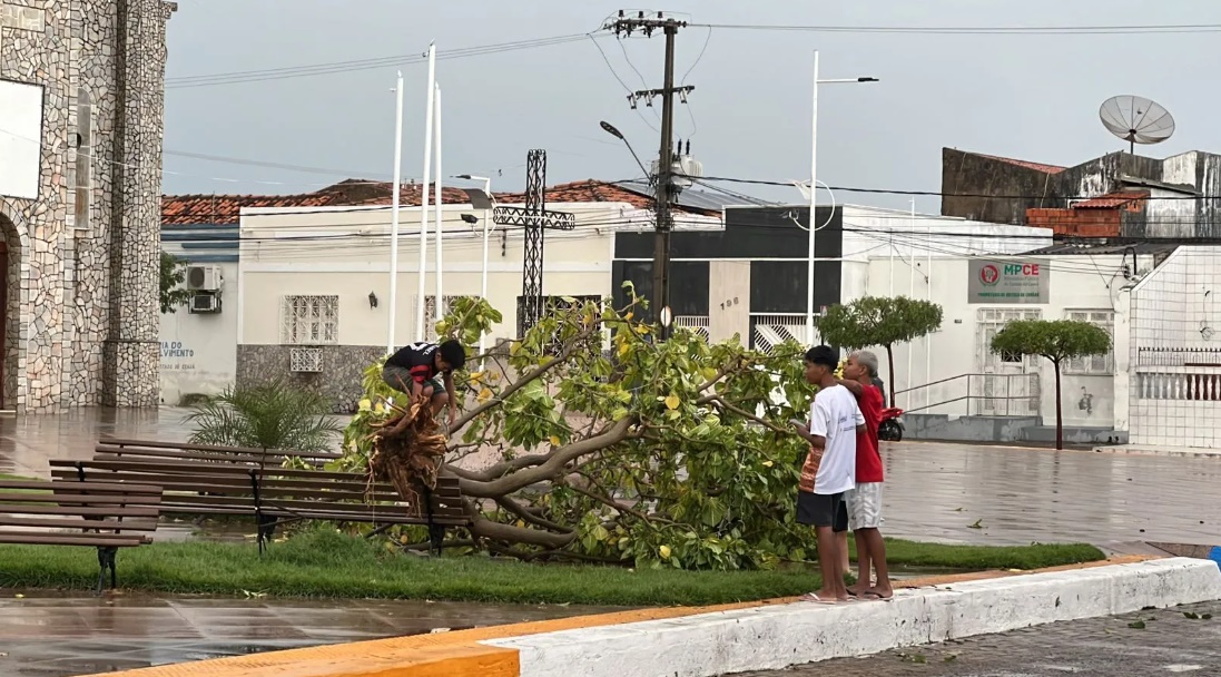Uma forte chuva atingiu o município de Coreaú, no interior do Ceará, nesta terça-feira (26). Moradores filmaram, inclusive, a queda de granizo durante a precipitação na tarde desta segunda. A chuva invadiu as casas, danificou o teto de uma escola, derrubou árvores e até a antena de uma rádio do município.