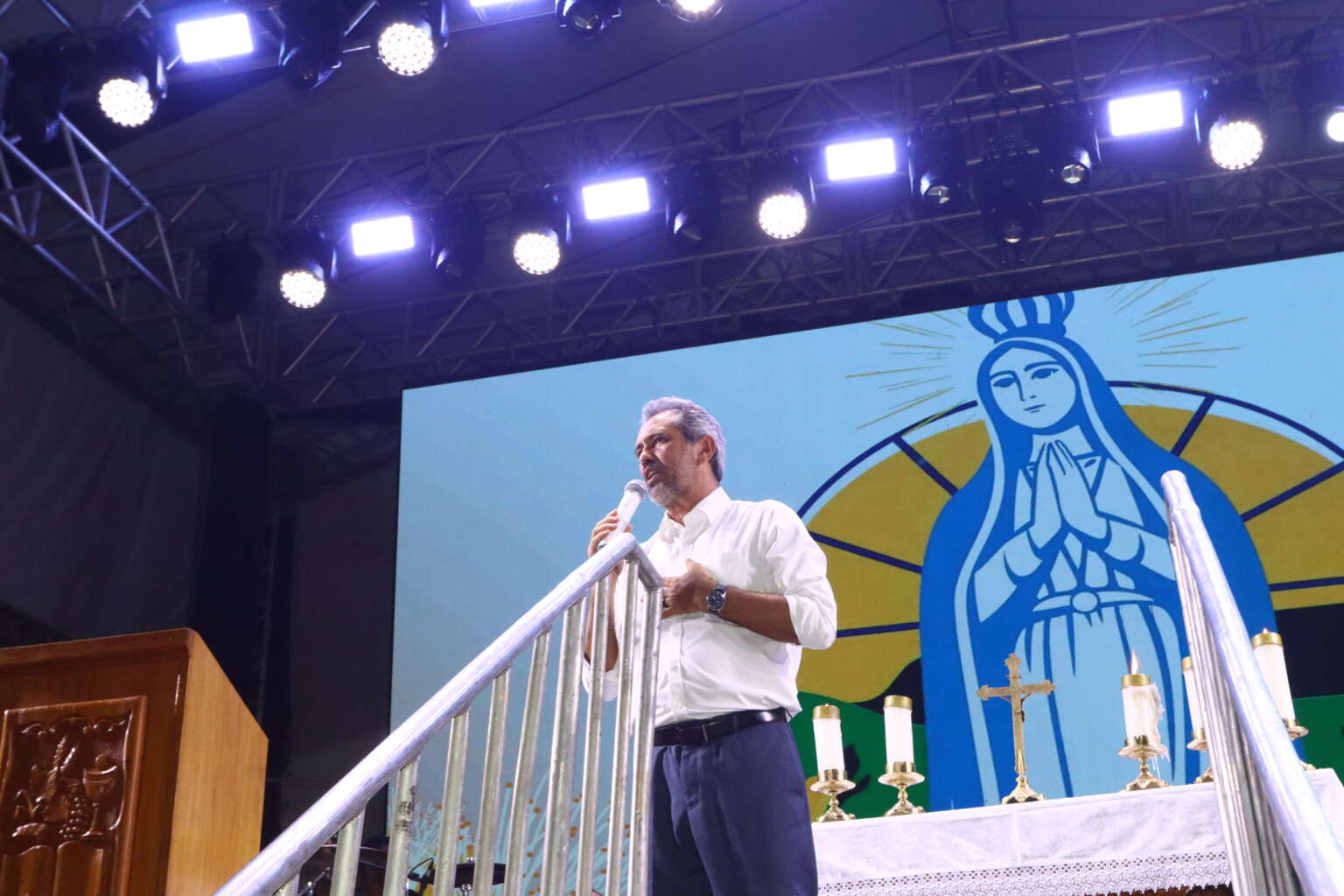 A solenidade começou com uma missa especial no palco montado diante da imagem, seguida da bênção inaugural. Muitos fiéis chegaram ainda no fim da tarde para garantir um bom lugar e acompanhar toda a programação.