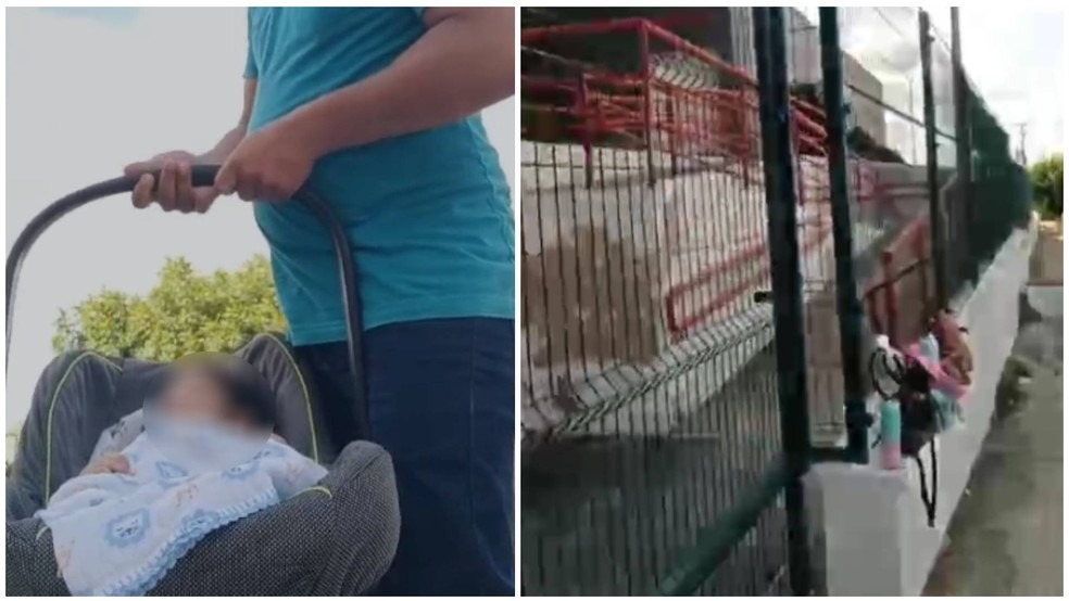 Segundo relato da família, o bebê e seu pai ficaram do lado de fora do prédio por mais de três horas, enquanto a mãe realizava a prova (Foto: Reprodução)