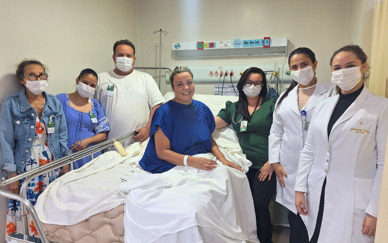 A fisioterapia começou já nas primeiras 24 horas, seguindo protocolo adotado no hospital. A coordenadora do serviço, Suianne Soares, destaca: “Utilizamos eletroestimulação (EENM) associada a outros métodos. Isso acelerou o ganho de força e melhorou o prognóstico.”