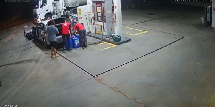 Um motorista furtou nove galões cheio de gasolina em um posto de combustíveis de Barbalha. O crime aconteceu nesta segunda-feira (12). Vídeos de câmera de segurança do estabelecimento filmaram toda a ação.