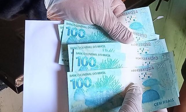Foram apreendidos 500 reais em cédulas falsas, nessa terça-feira (11), no bairro Cacimbas