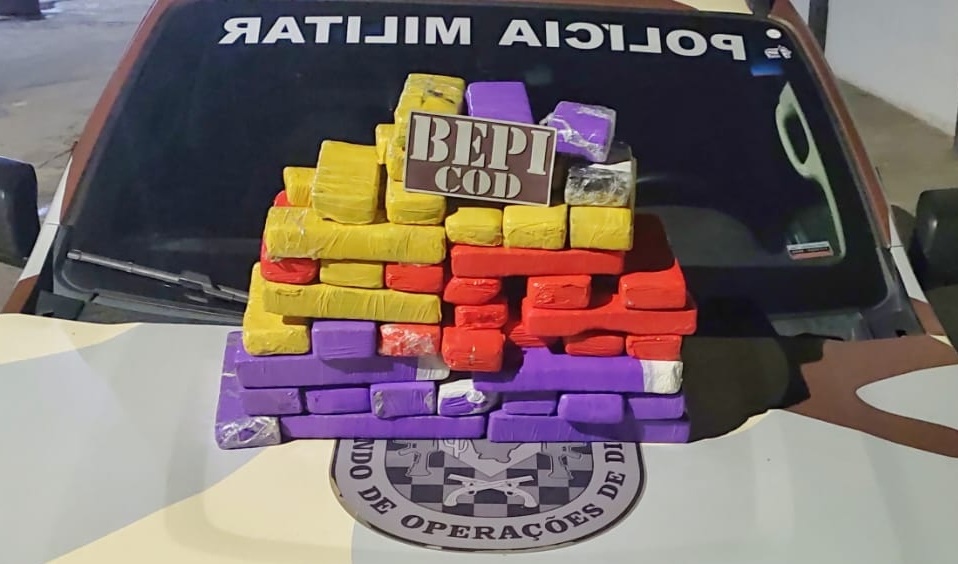 Após denúncias de que uma pessoa estaria transportando drogas em um ônibus rodoviário, os policiais militares do Comando de Operações de Divisas (COD), do Batalhão Especializado em Policiamento do Interior (BEPI), iniciaram diligências para verificar as informações. Ao abordar o veículo, uma mala com diversos tabletes de maconha foi encontrada. Ao todo, foram apreendidos 28,3 quilos da droga.