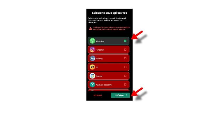 2. Na lista, escolha o WhatsApp como app que você deseja recuperar o conteúdo. Continue em “Próximo”;