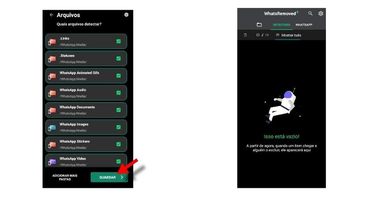4. Continue em “Guardar”. Surgirá na tela um painel que mostrará as conversas excluídas.